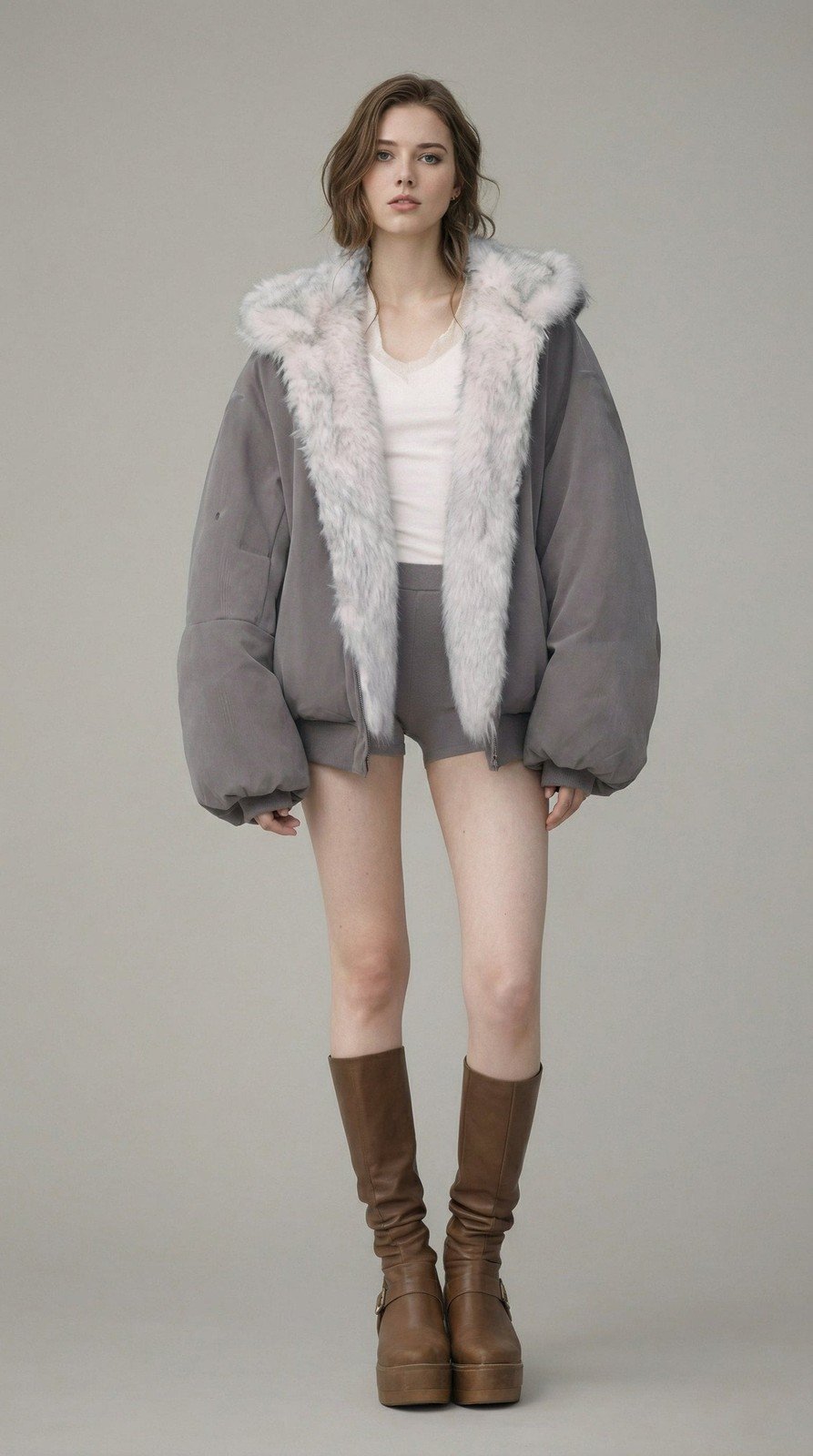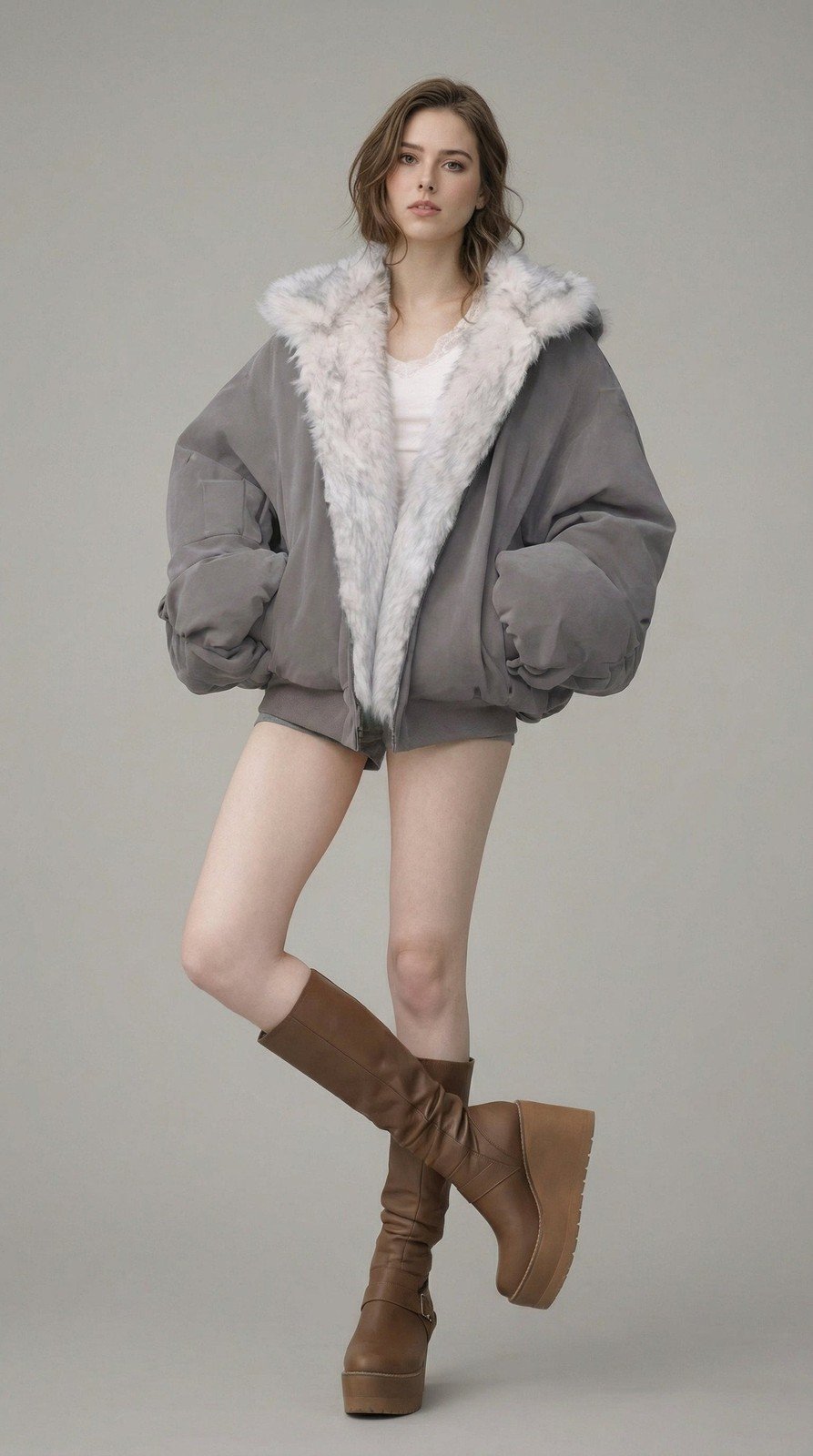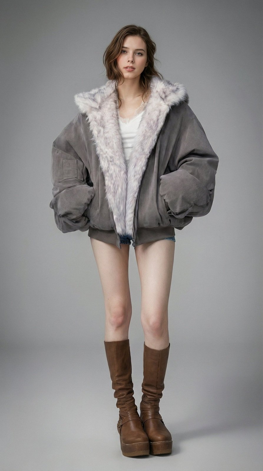 - Oversized bomber jacket silhouette with volume