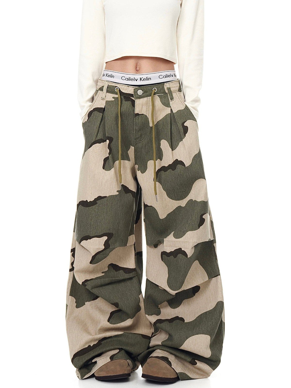 Step into that throwback energy with these Retro Camouflage Wide-Leg Overalls.