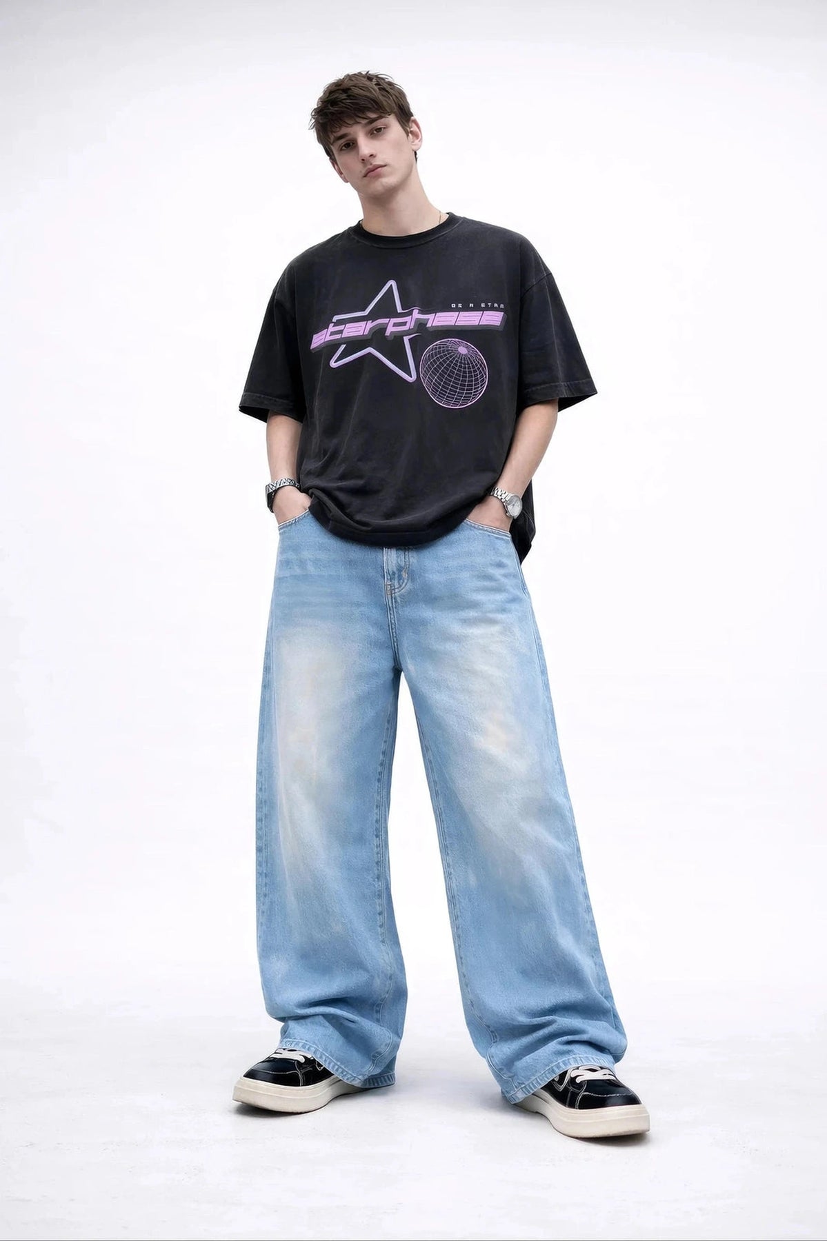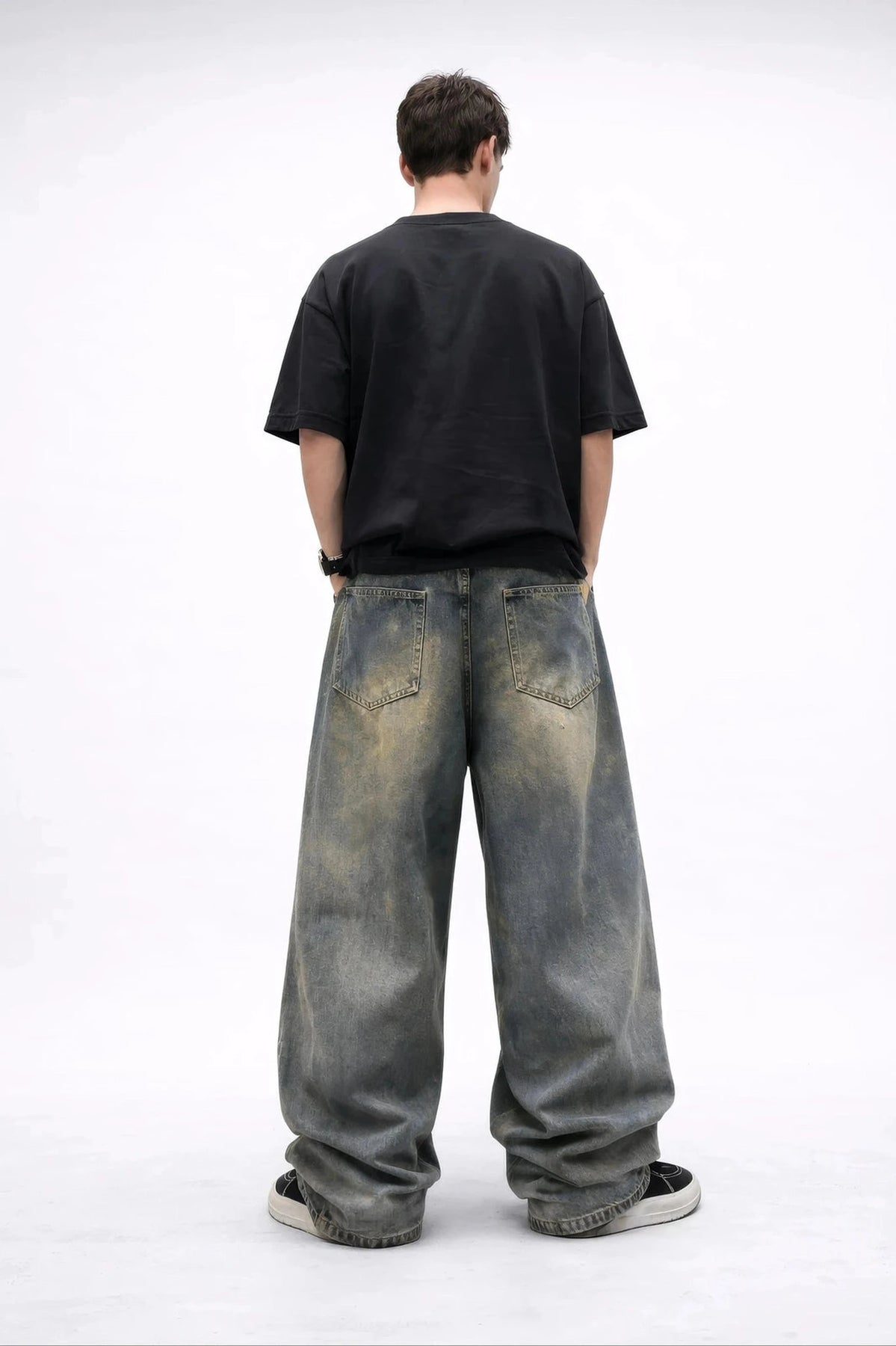 These ultra-baggy wide-leg jeans bring heavy retro energy with a sun-faded multi-tone wash that feels perfectly worn-in from day one. The oversized drape hits exactly how Gen-Z streetwear should — relaxed, bold, effortless.